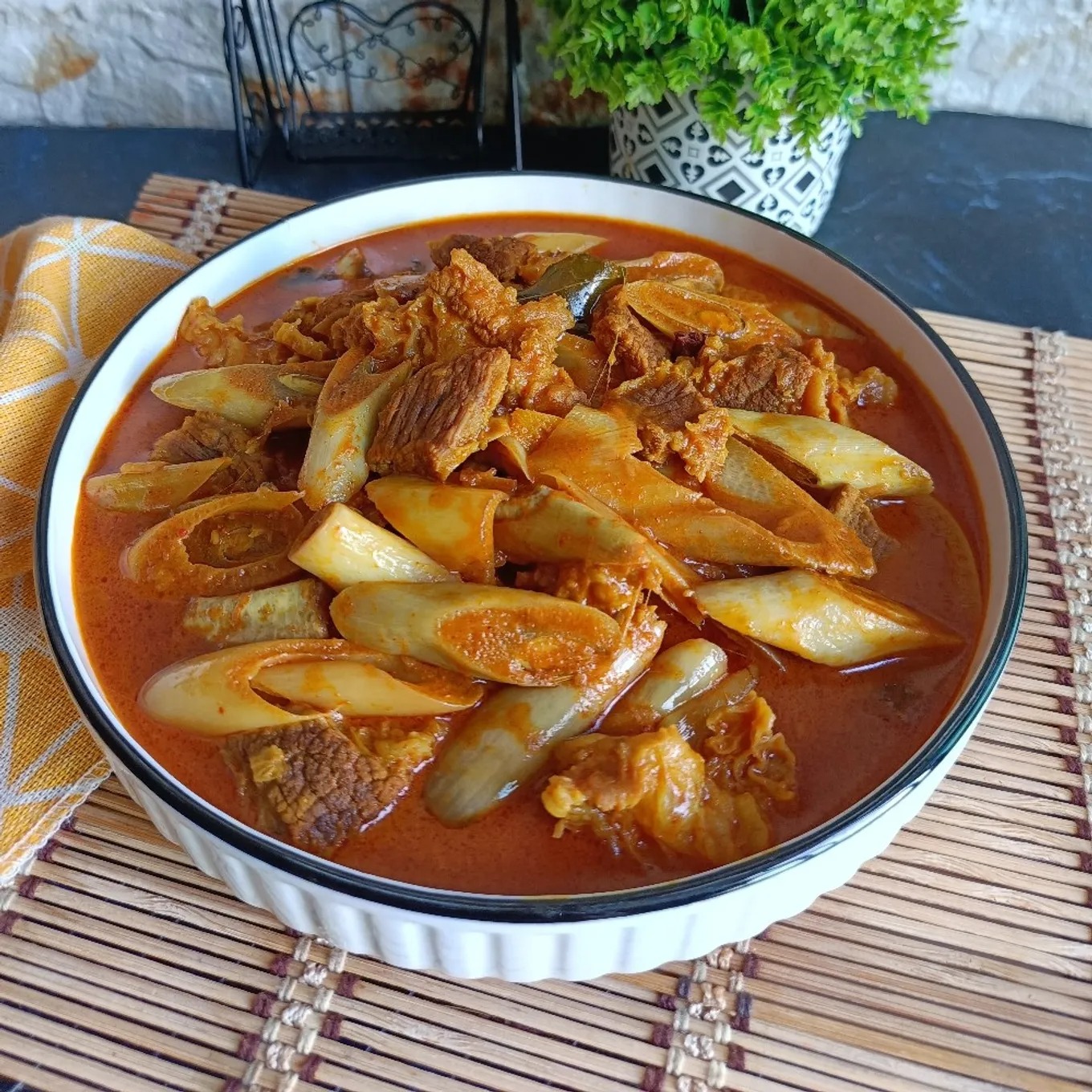 Culturally, Gulai Umbut Pisang is frequently served as a main dish during village feasts, weddings, and other celebratory occasions. Its popularity at such events stems not only from its delicious taste but also from the ease of sourcing its main ingredient in rural areas. Banana plants grow abundantly in village surroundings and can be obtained at little to no cost. In many cases, banana stems are available for free through sharing among neighbors and relatives.