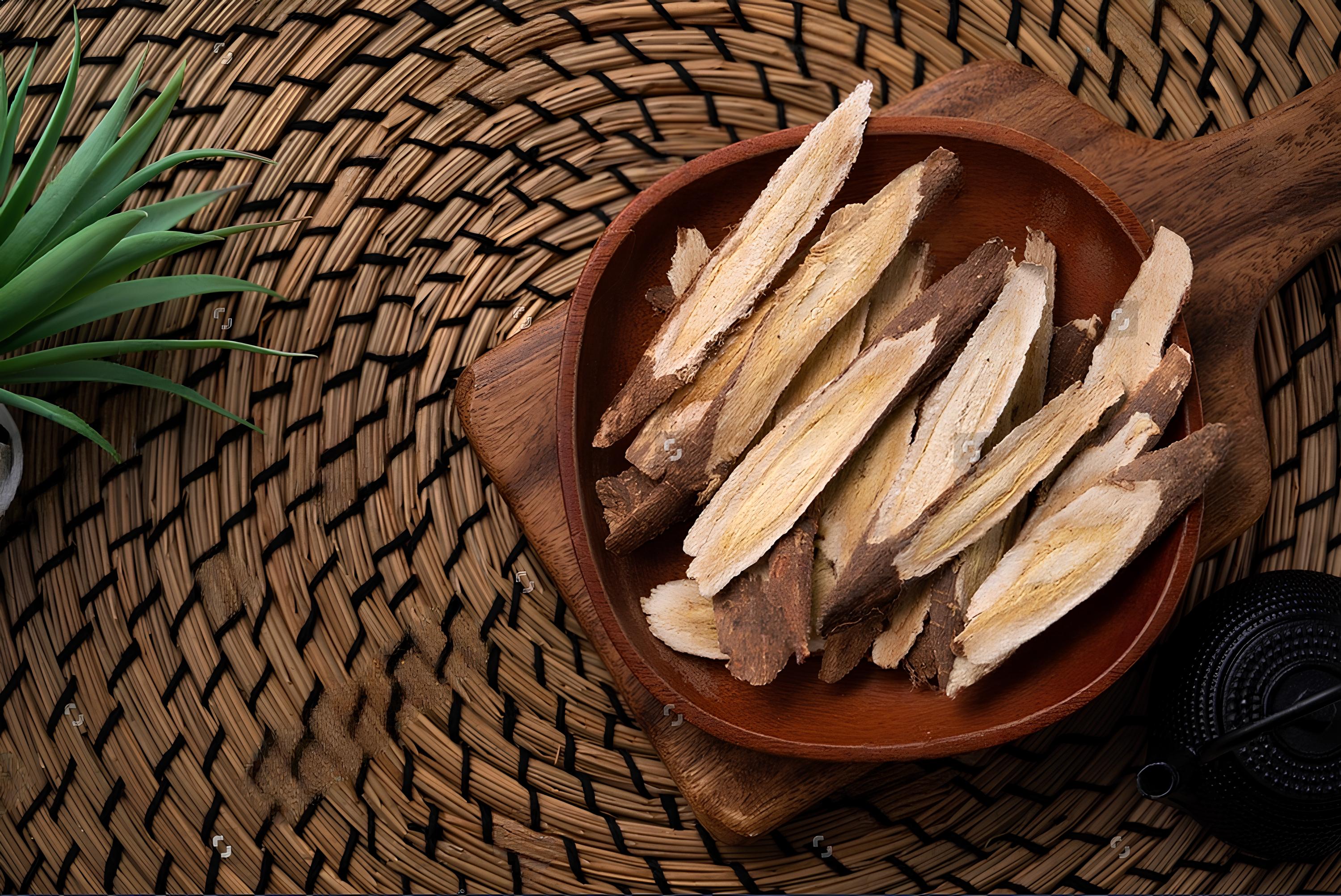 Ambil 1–2 keping akar astragalus kering (sekitar 10 gram).