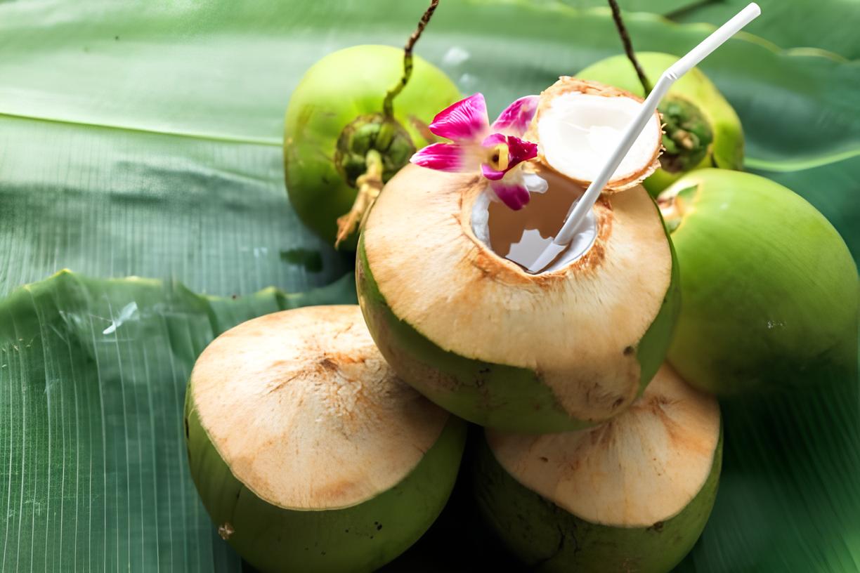 Air kelapa muda sering digunakan sebagai minuman tradisional untuk menyejukkan badan. Ia mengandungi elektrolit semula jadi yang membantu menggantikan cecair tubuh yang hilang semasa demam. Amalan ini juga dipercayai dapat membersihkan toksin dalam badan.