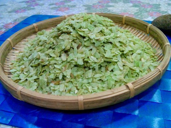 Kemudian padi pulut digoreng tanpa minya (disangai) atas api terbuka sehingga mula ‘meletup’ dan berubah warna kekuningan.Foto 2: Emping Padi Pulut