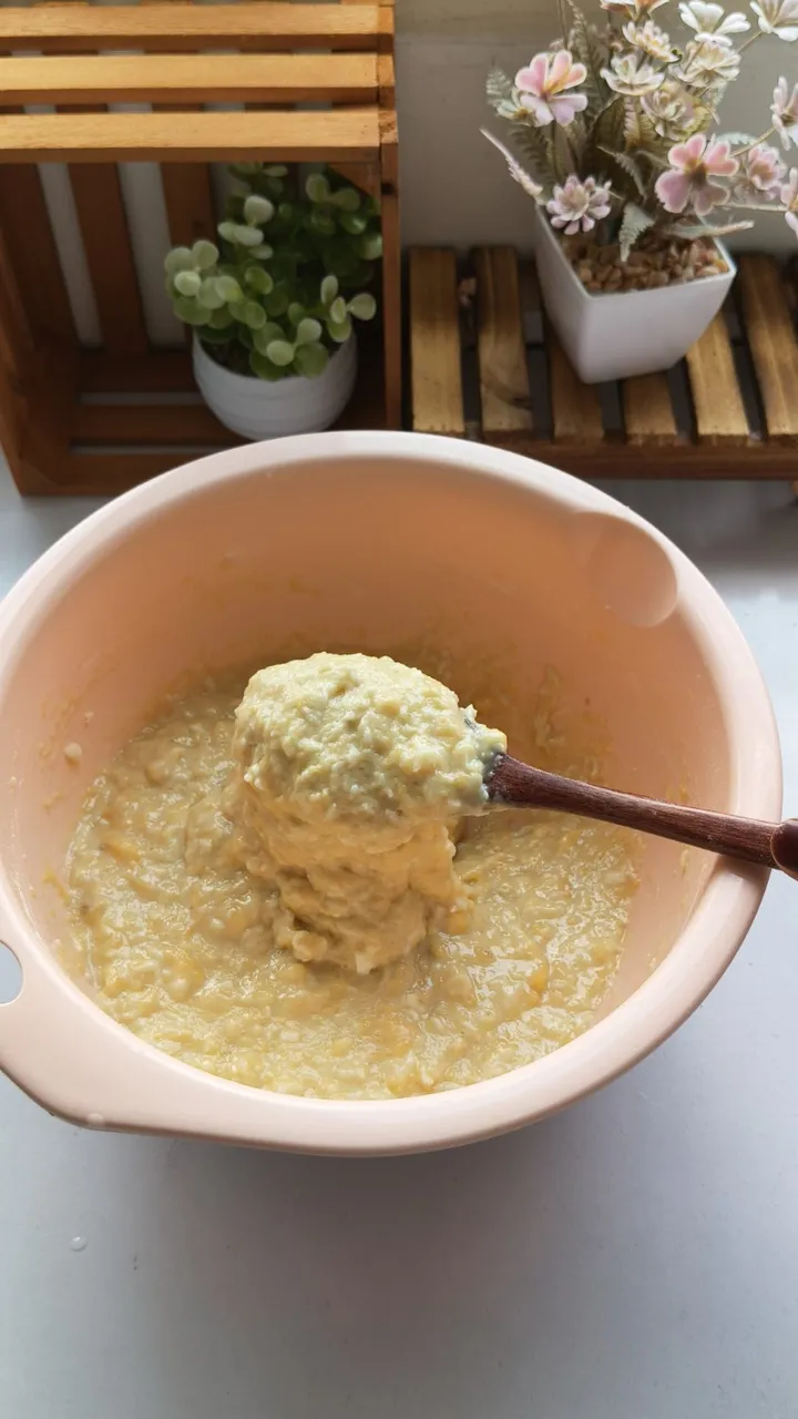 Gaul semua bahan sehingga sebati dan membentuk adunan yang lembut.