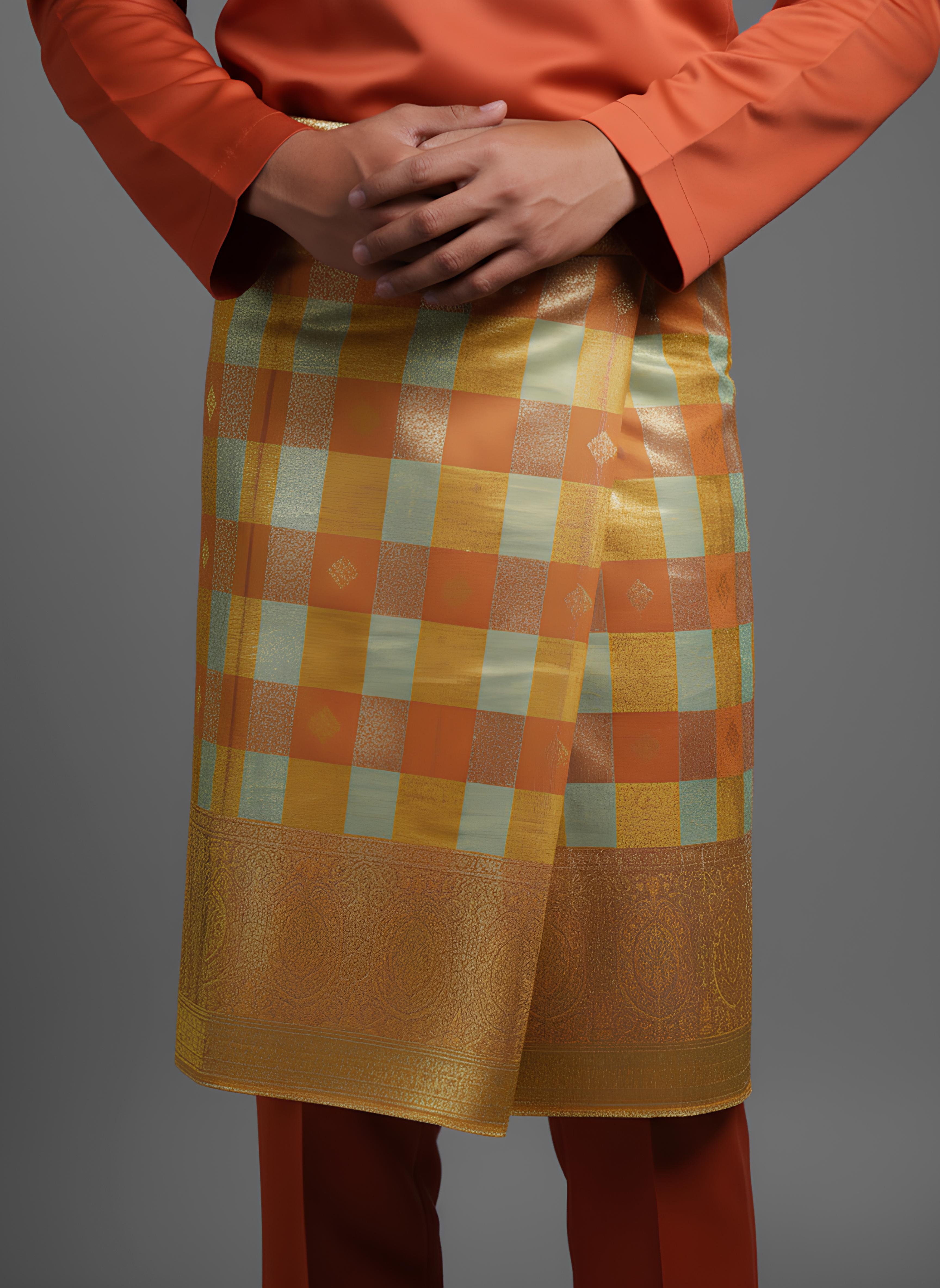 Keris: Untuk majlis istiadat atau sebagai pengantin, keris diselitkan di bahagian hadapan lilitan samping.