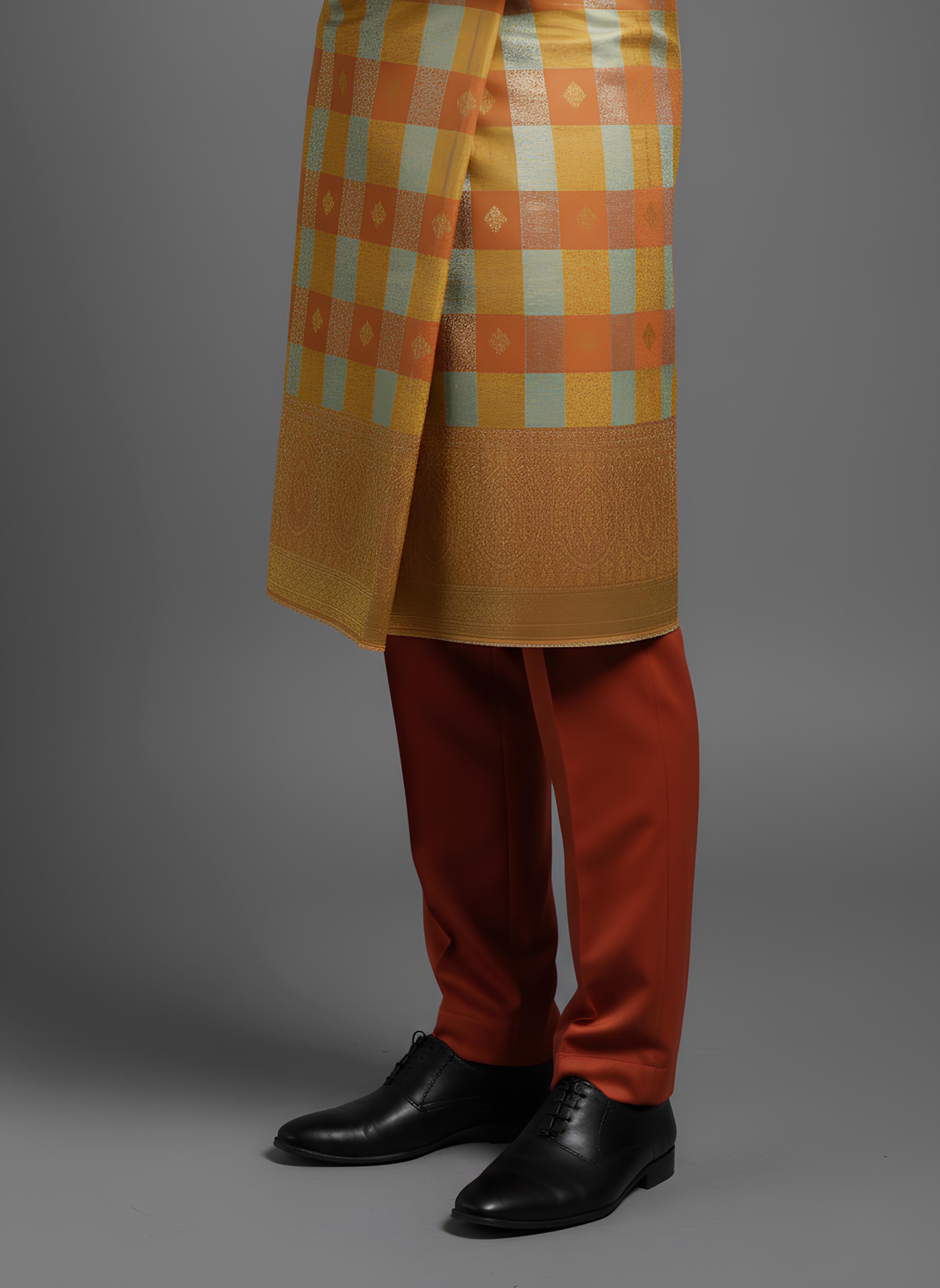 Capal atau Kasut - Sarungkan capal untuk gaya tradisional yang asli. Jika menghadiri majlis yang lebih moden atau formal, kasut kulit berwarna hitam atau gelap juga adalah pilihan yang sangat sesuai.