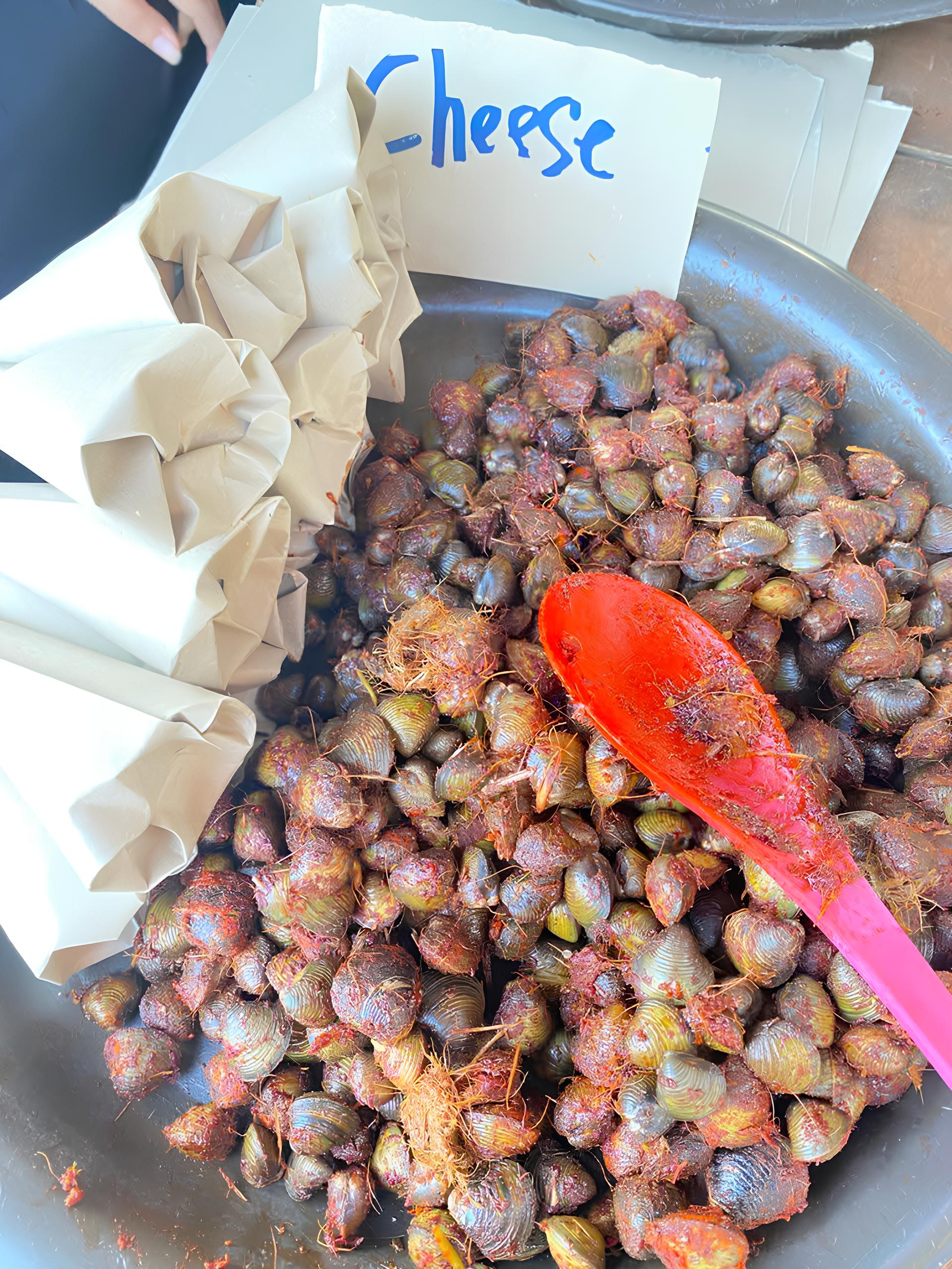 Cara menikmatinya amat mudah iaitu cengkerang dihisap bagi mengeluarkan isi kecil di dalamnya.