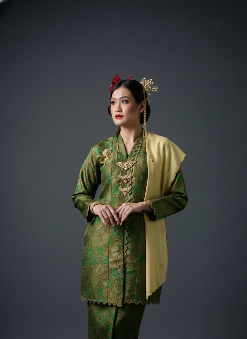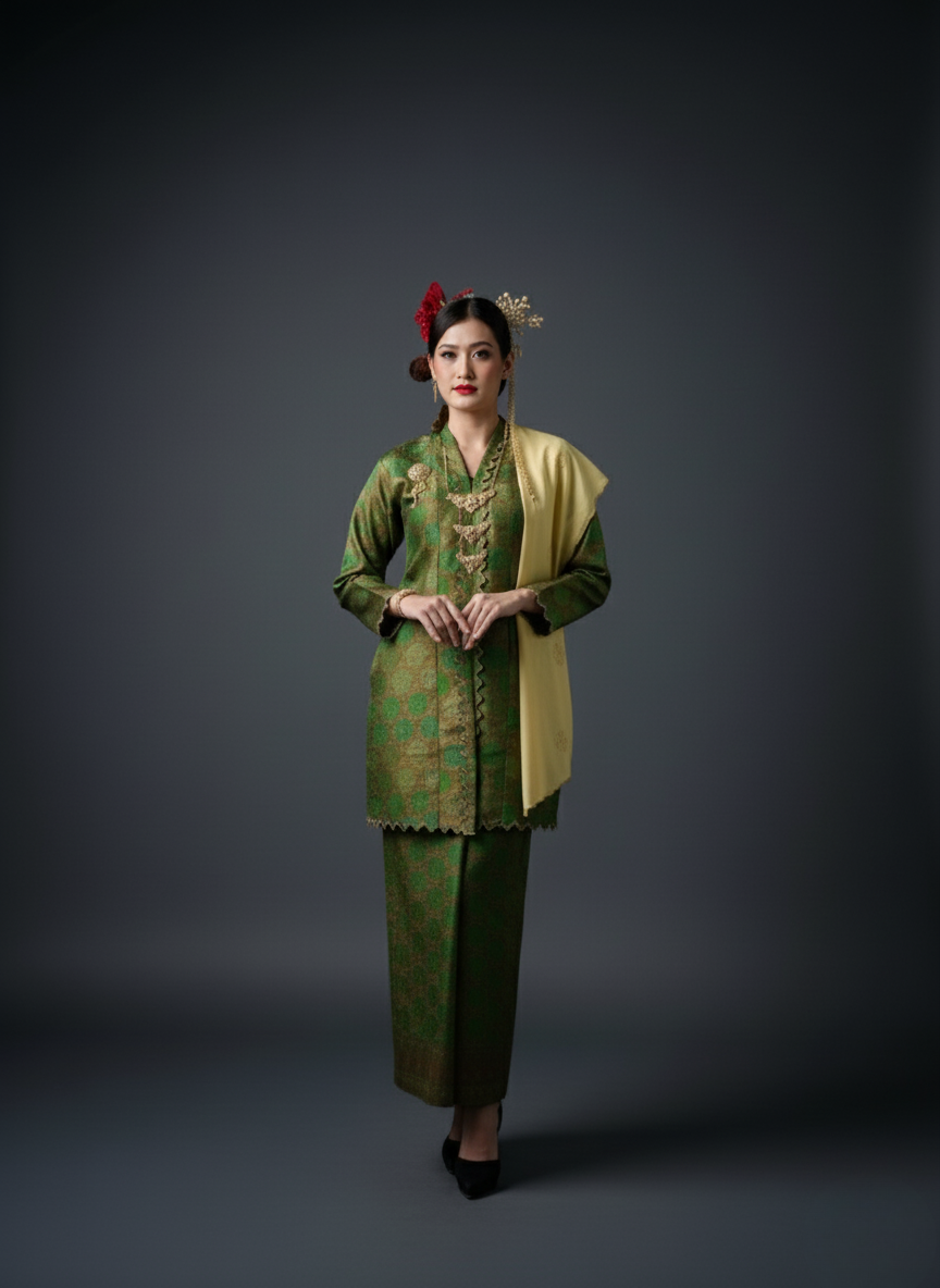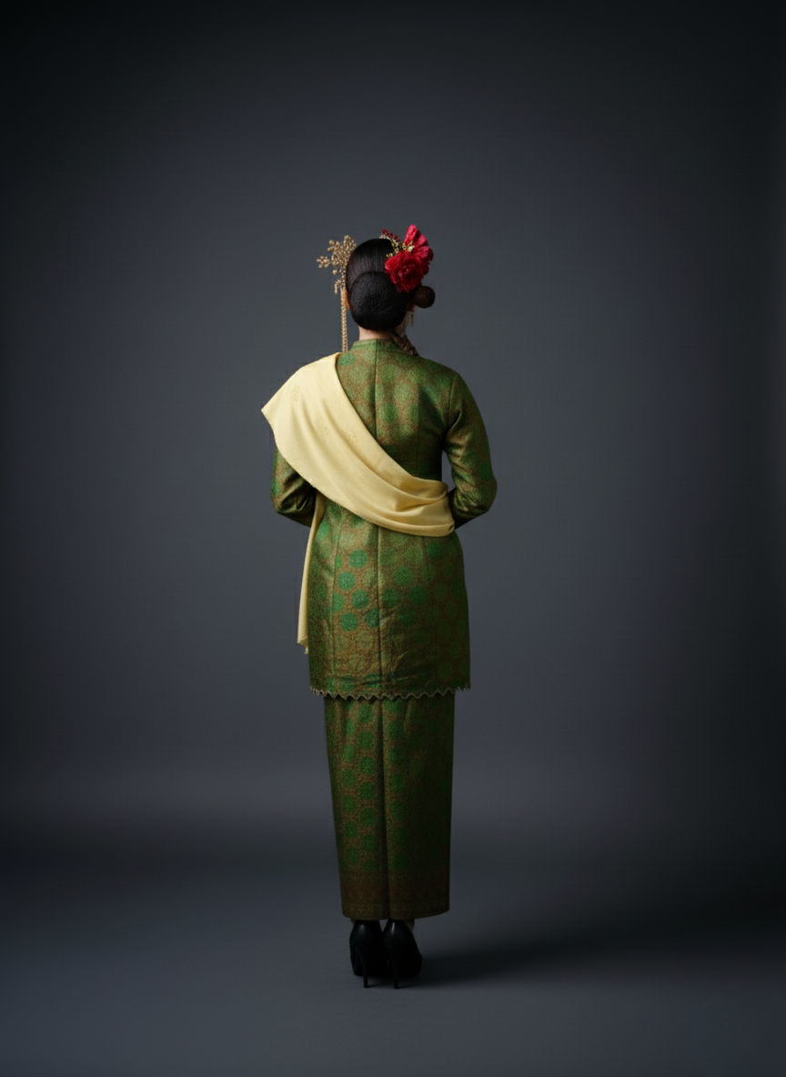 Penampilan keseluruhan perlu kemas — baju di seterika, lipatan kain seimbang, dan warna aksesori disesuaikan dengan warna kebaya dan kain sarung.